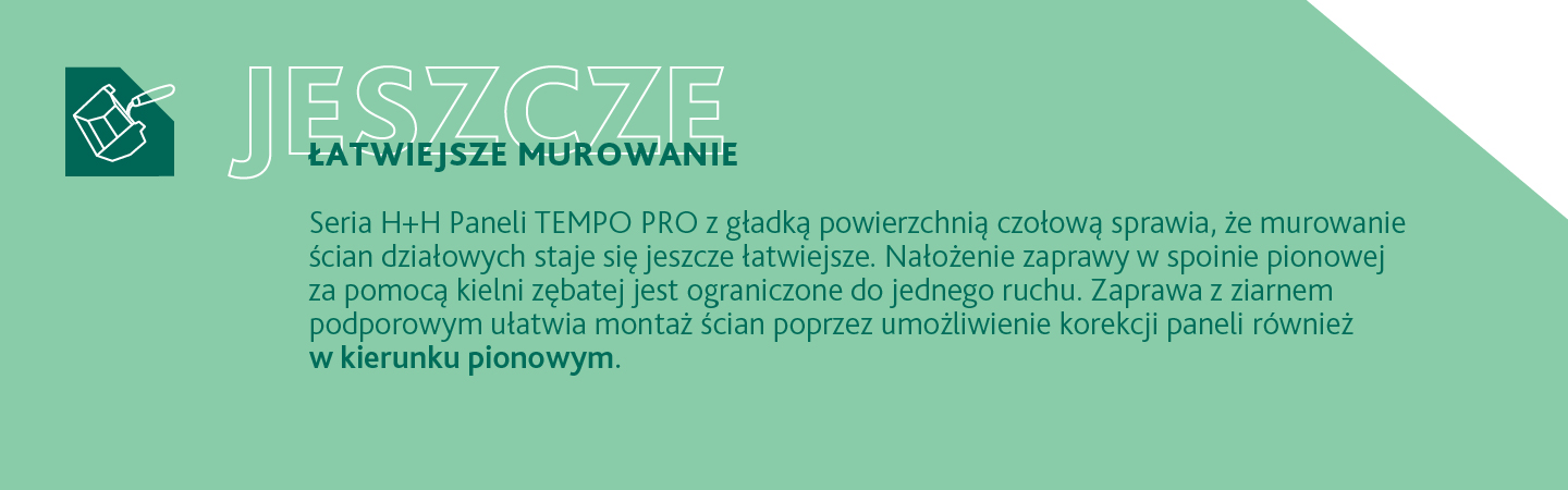 H+H System TEMPO PRO to nowoczesne rozwiązanie do budowy ścian działowych, opracowane z myślą o wymaganiach współczesnego rynku budowlanego i standardach pracy profesjonalistów: projektantów, wykonawców i inwestorów.