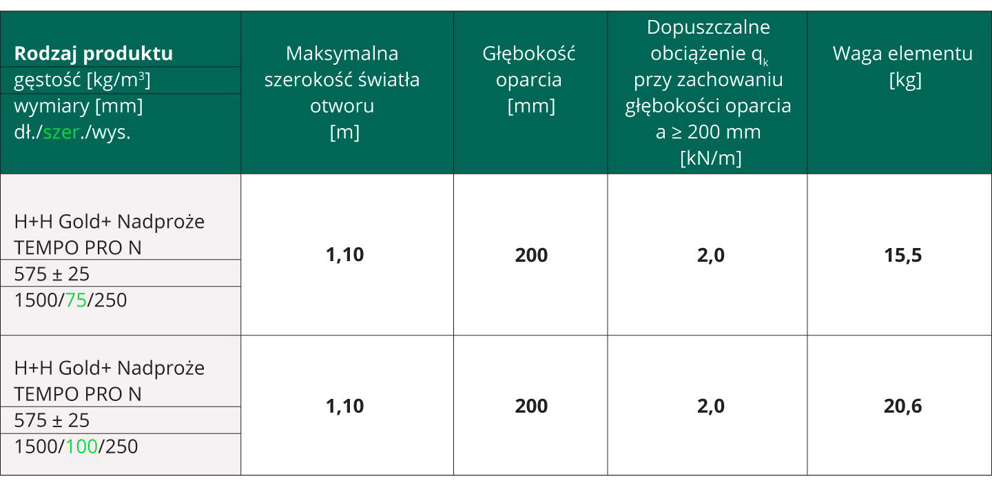 - H+H NADPROŻE TEMPO PRO N lekki, gotowy wariant nadproża nad otworami w ścianach działowych