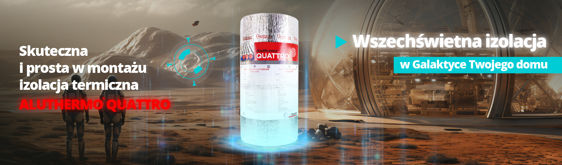 Aluthermo® QUATTRO jest pierwszym, cienkim, wieloodbiciowym systemem izolacji wielowarstwowej w całości zgrzanym termicznie. Składa się czterech warstw czystego, polerowanego aluminium, zabezpieczonych przed utlenianiem. Oddzielone są one od siebie dwiema warstwami pęcherzyków suchego powietrza. Z kolei wewnątrz izolacji, znajduje się warstwa komórek powietrznych zamkniętych w samogasnącym filmie polietylenowym. Dzięki swojej wyjątkowej budowie, zapewnia komfortowe warunki temperaturowe zarówno latem jak i zimą.